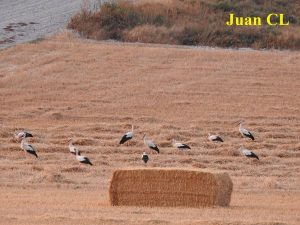 Pero antes se las puede ver en grandes grupos acompañando a las cosechadoras a la caza y captura de insectos, reptiles y pequeños mamíferos y aves que quedan al descubierto al paso de las máquinas. Un bonito espectáculo que se repite cada año.