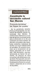 El 1 de noviembre de 1987 fue fundada la Asociación Cultural San Mamés, de FUENTEPIÑEL, y hoy, 37 años después, dejamos aquí constancia de esta efeméride con la relación de personas asistentes al Acto Constitucional, quienes elaboramos el Acta Constitucional, y con el recorte de la noticia aparecida en El Adelantado de Segovia dando cuenta de dicha constitución.