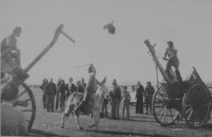 Los actos profanos los protagonizaban los “quintos” del año, quienes bajaban a las eras o al prado a “Correr el gallo”. Los gallos acababan sirviendo de merienda, y el día terminaba con un animado baile, que era pagado por ellos. Si mi información es correcta los últimos quintos que corrieron el gallo fueron los de 1978 (yo lo corrí en 1977). ¡Y ya ha llovido desde entonces! (sobre todo los últimos años).