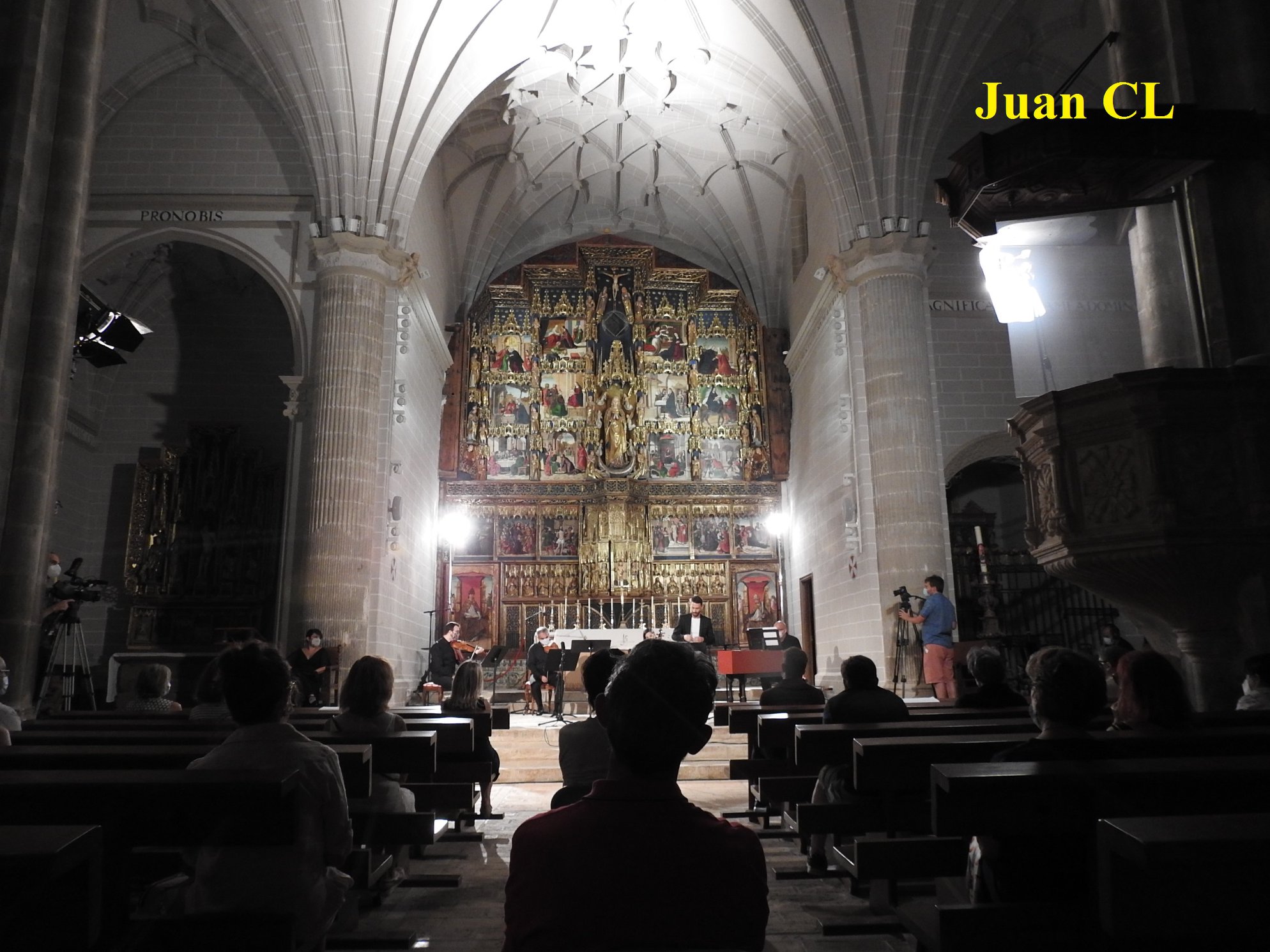 Ayer asistimos a un concierto en el marco incomparable de la colegiata de Santa María la Mayor, de Bolea, sirviendo como escenario su espectacular retablo mayor gótico realizado entre 1490 y 1503, con sus 20 tablas pintadas al temple por el anónimo Maestro de Bolea, y sus 57 tallas de maderas nobles policromadas de Gil de Brabante, y el retablo de San Vicente, tallado en madera de pino rojo autóctono.