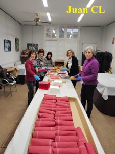 Tras el encendido se reparten a todos los asistentes varios centenares de bocadillos de chorizo y salchichón (este año han superado los setecientos), acompañados del vino correspondiente, y quiero dejar aquí constancia de nuestro agradecimiento a las voluntarias que un año sí y otro también se prestan para su elaboración.