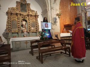 Como ha sucedido en tantos lugares, la lluvia ha impedido este Viernes Santo el normal desarrollo de la procesión del Entierro en la villa oscense de BOLEA, pero ello no ha sido óbice para que la comunidad católica cumpliera con el ritual en el interior de la iglesia de la Virgen de la Soledad venerando los pasos que estaban preparados para ser procesionados, con la participación de la banda de tambores local así llamada en su honor. Dejamos constancia de la misma procesión de 2023. ¡Buen día!