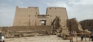 La ciudad de Edfu, destartalada, es la viva imagen de la decadencia, del abandono y de la suciedad, rayana con la miseria, y en nada se corresponde con la magnificencia y monumentalidad de su mundialmente conocido templo ptolemaico dedicado al dios halcón Orus, en el que una marabunta de gente en torno a su guía correspondiente intenta abrirse paso a codazos en su interior. Mucha presencia de turistas españoles que a buen seguro se irá reduciendo en un futuro inmediato en palabras de nuestro guía como consecuencia del descenso de reservas por los acontecimientos bélicos “cercanos”.