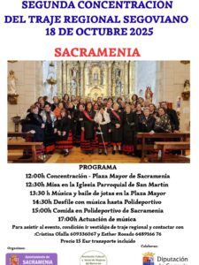 Mañana sábado, 18 de octubre, tendrá lugar en Sacramenia la 2ª Concentración del traje regional segoviano con diversas actividades durante toda la jornada.