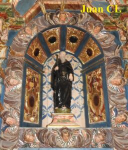 Dado que este año no nos es posible asistir personalmente, traemos la foto del año 2022 cuando cumplimos con la tradición de pasar (reptar, diría yo) por debajo del altar donde se le ofrece devoción, dando las tres vueltas de rigor en torno a la “piedra del santo” por tan angosto y claustrofóbico pasadizo, lo que, según la tradición, cura las hernias (yo ya estoy operado de la L2-L3 y de la L5-S1. De lo que se deduce que he llegado tarde a cumplir con la tradición).