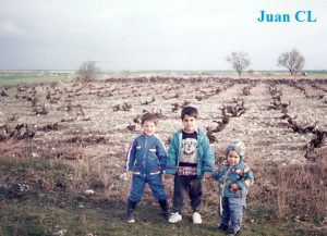 “A finales de abril, la flor de la vid”. No me resisto a poner esta imagen de la cuadrilla de obreros que me ayudó a sarmentar en 1993 si no me fallan las cuentas. El majuelo de El Descansadero sigue ahí, tal cual, como hace, al menos, más de siglo y medio que yo sepa. Los almendros del fondo han crecido, y bastante, en estos 28 años, aunque apenas si hemos comido de ellos algún triste almendruco (un año sí y otro también los hielos se encargan de que esto sea así). Pero los que más han crecido han sido los tres obreros, a los que espero contratar más pronto que tarde para reeditar tan entrañable escena. Y como los tres se pasan por estos Saludos, que sepan que lo tenemos pendiente. ¡Buen día!