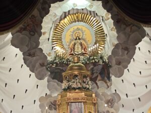 La Salve a la Patrona de Getafe Nuestra Señora de los Ángeles, en un acto religioso de máxima vistosidad y de gran participación ciudadana, en lo que se refiere o significa el acto de la salve de «exaltación al trono de la patrona de Getafe y de la diócesis, en la catedral de la Magdalena de Getafe.