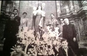 En la foto algunos reconoceréis al padre Goñi, a Pepe el Monjero de las Claras, a Félix Martínez-Carrasco Ródenas (en el grupo de la derecha), a Manolo Jiménez y a Jesús » el Tortas» (agachados).