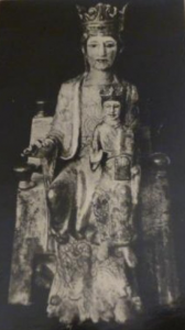 Cuenta la tradición que fue levantada esta ermita con piedras de los Mallos y arena también de la misma procedencia. Aquí, una imagen de la Virgen, sedente, morena, mirando mayestática desde una cátedra rematada por bolas, sostiene al Niño Jesús en su brazo izquierdo, portando el Niño un libro en su mano izquierda y da la paz con la derecha, la vestimenta de Ntra Sra es de color azul y oro estofado sobre la madera, y se ciñe con un cordón. Es obra del siglo XIII que bendice y presta el amparo a un pueblo que vive bajo los grandes peñascos y sabe que nunca ha caído piedra sobre esta edificación, es por ello que, dándose la conjunción de Madre y Tierra, desde tiempo inmemorial los hombres de los lugares vecinos tomaban una piedrecita de su templo que posteriormente llevada durante la siega en la boca, o durante largas caminatas, evitaba los sudores y calmaba la sed.