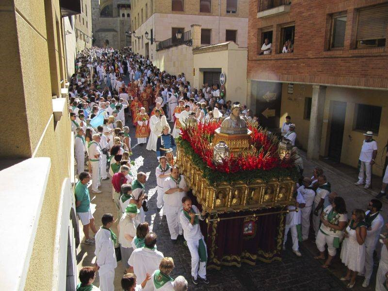 Catarsis, una bella palabra que puso en circulación Aristóteles y que viene a decir o significar como los espectadores, las gentes de Huesca, ven proyectadas en los danzantes el efecto purificador que necesitan, que participan anímicamente en ese sacrificio del sacerdote que dirige el dance y ofrece su cabeza en la parrilla conformada por las espadas al invicto Lorenzo, para después hacer la Peregrinación-Dance, por las calles de la ciudad, mientras Lorenzo bendice a todos.