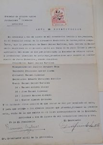 El día 2 de agosto del año 1931 en el domicilio social de la Agrupación Socialista de Parres -en Arriondas- se constituyó la “Sociedad de Oficios Varios y Profesiones Liberales de Arriondas”, siendo elegidos para su primera junta directiva: