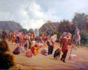 La pintura del blanqueño Luis Molina refleja la pena que expresaban cuando fueron expulsados de sus lugares, en este caso, de Blanca.