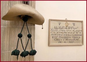 Al pasar por Tartanedo, donde veo el interior de su iglesia gracias a la amable colaboración del alcalde Larriba, me sorprende este detalle en un rincón del crucero: es el capelo y un cartel que recuerdo al Obispo de Cádiz, don Francisco Javier Utrera, que nació en la casona de su familia, en lo alto de la costanilla de San Bartolomé de #Tartanedo.