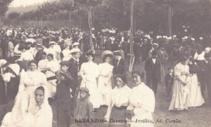 Como novedad incorporamos una tarjeta postal de nuestro archivo particular, efectuada en el sobredicho Campo de los Caneiros en plena romería agosteña, realizada y editada por Avrillón a principios del siglo XX, en cuyo centro figuran algunos parientes nuestos elegantemente ataviados. Remitimos a la entrada de esta página web «Adiós campos de Mempás«.
