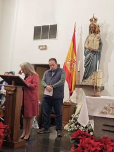 Asistieron al Triduo, presidentes de diferentes instituciones de Getafe y de las Casas Regionales, además de un grupo de autoridades civiles y militares que asisten habitualmente, entre las que se encontraban el coronel Jefe del ACAR don José Cebrián y su esposa.
