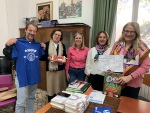 De nuevo, repartimos a su directora, Patrizia di Franco, un ejemplar de Un paseo que nos une en una ocasión enormemente significativa, ya que, después de mucho esfuerzo y con retraso debido a las limitaciones previas para los viajes, el profesorado de nuestros dos centros podía encontrarse e iniciar una relación que esperamos sea fructífera en el futuro. Elda y Petrer llegaban también de alguna manera a una de las ciudades más antiguas del mundo cuyos sassi, antiguas viviendas trogloditas, fueron declaradas en 1993 Patrimonio de la Humanidad por UNESCO.