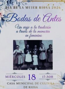 Además, se proyectará un vídeo con fotografías de bodas celebradas en Riosa entre las décadas de 1920 y 1960, imágenes que han sido generosamente cedidas por vecinos y vecinas y que constituyen un valioso testimonio de nuestra historia colectiva.