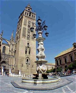 Del hostal de Sevilla salí al río Guadalquivir. Estoy hospedado a una cuadra de este río. Luego subí a un turibús e hice un tour por Sevilla y Triana. Nomás era “para calentar” el conocimiento del recorrido. Yo sé a los lugares que voy a ir. Luego me dirigí caminando a la Catedral y pasé por el Archivo de Indias. Me tienta entrar para ver los archivos pero antes debo conocer la ciudad. Di vuelta a la Catedral que ocupa una manzana completa, impresiona la puerta principal de estilo gótico pero la puerta del Perdón tiene un raro atractivo. Y no es por los pecadores.