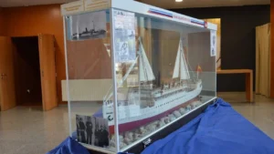 La réplica del buque está cuidada al detalle, con con 1,80 metros de eslora, 24 centímetros de manga, 30 kilos de peso y un casco de poliéster con 1.400 clavos. La maqueta cuenta, incluso, con dos motores eléctricos.