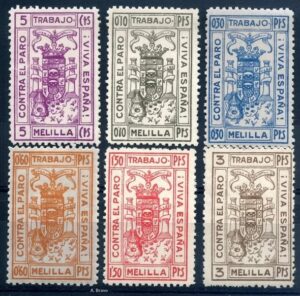 Durante la Guerra Civil española y postguerra, en muchas localidades se emitieron unas viñetas con el lema «Contra el Paro». No son sellos propiamente dichos, pero sí piezas filatélicas que encierran una interesante iconografía. Su finalidad era recaudar fondos contra el desempleo dentro del marco de una economía de guerra, y se añadían a las cartas y a otros documentos como un sobrecargo.