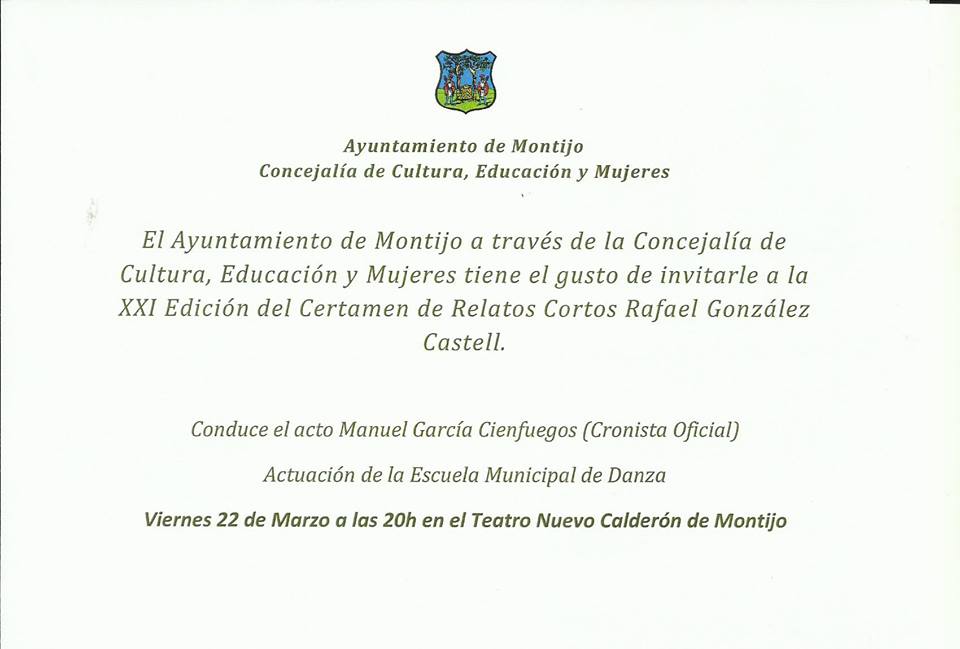 En estas fechas, cuando el rememorar se hace efeméride, regresa cada año la entrega del Premio de Relatos Rafael González Castell. Será el viernes 22 de marzo, a las 20:00h. y el Teatro Nuevo Calderón acogerá su ceremonia de entrega. La familia de Fulgencio Valares Garrote, recibirá el premio a título póstumo de la vigésima edición por su obra “La Noción del Cero”, al haber fallecido en julio del año pasado. Se presentará el libro “Desenlaces sorprendentes”, del escritor valenciano Pedro Jesús Cañada Hernández, obra ganadora de la edición anterior.